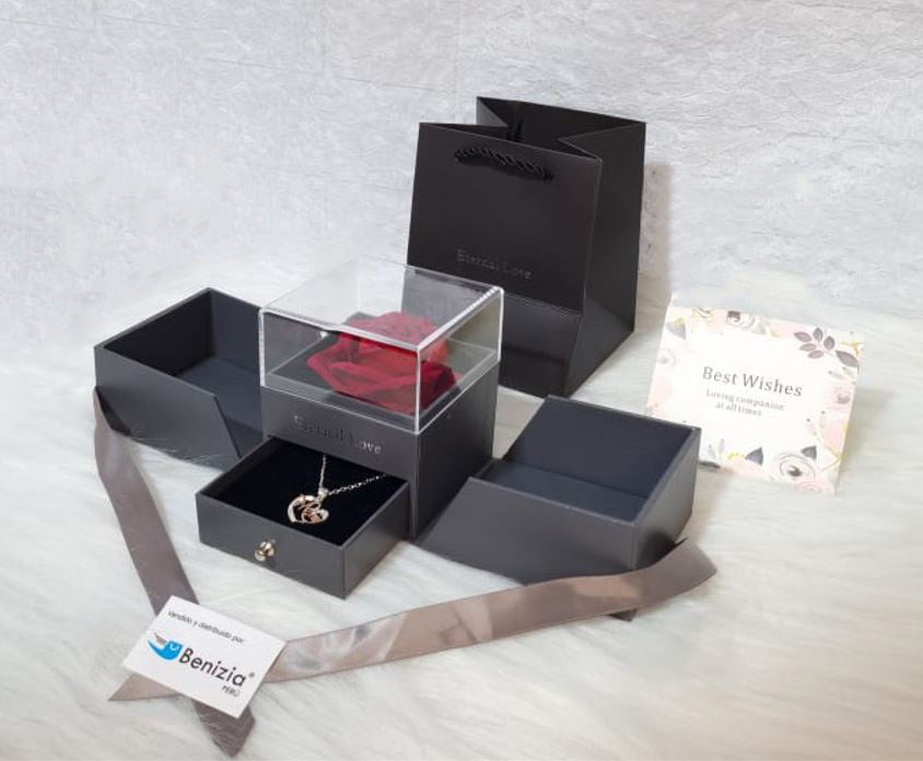 ✅ Joyero con una rosa de terciopelo en el interior con un leve perfume